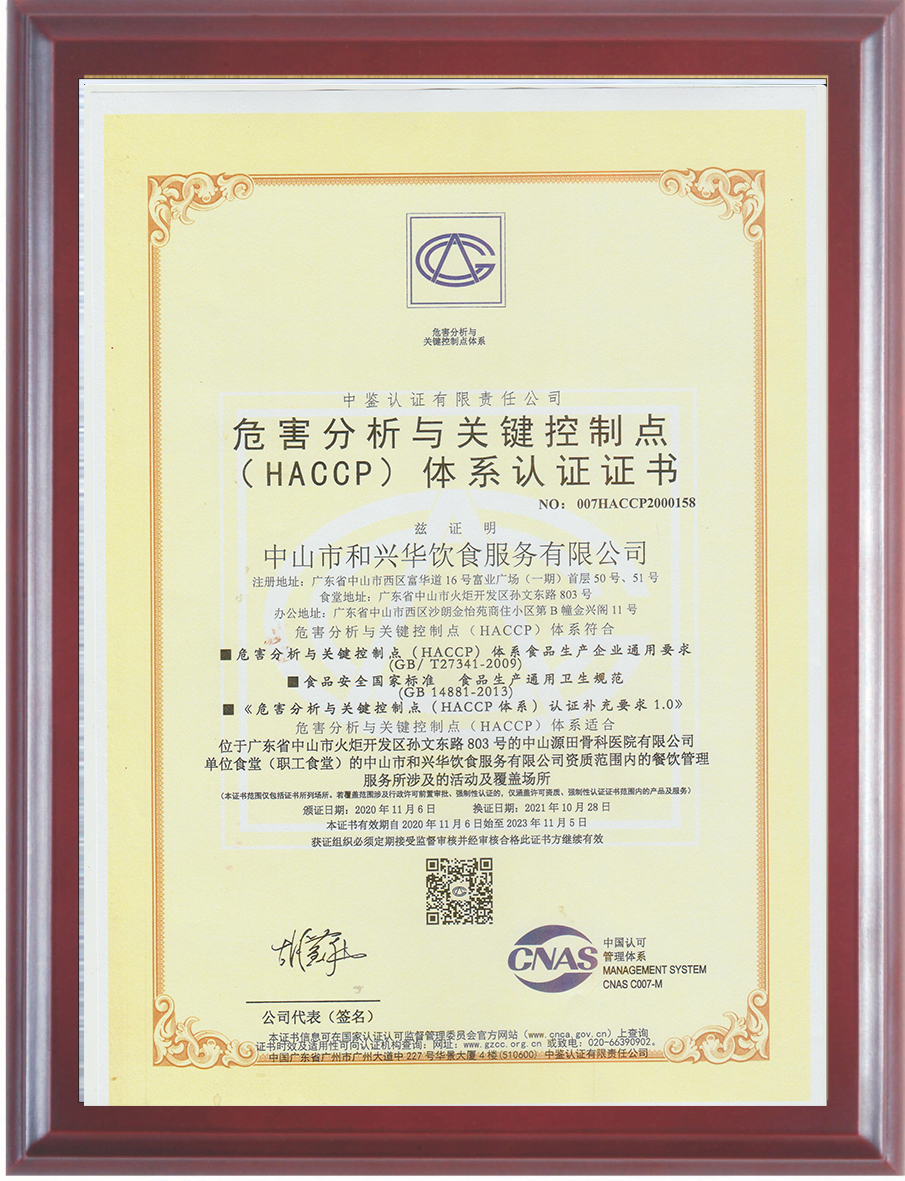 嚴(yán)格執(zhí)行“8S”及HACCP管理,PDCA, 營(yíng)造安全、舒適的食堂環(huán)境員工管理實(shí)行考核制度,實(shí)行持證上崗定期舉行員工技能培訓(xùn),不斷提升員工服務(wù)質(zhì)量